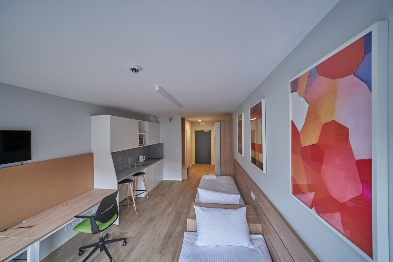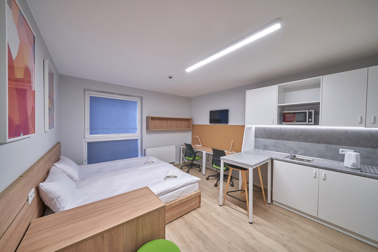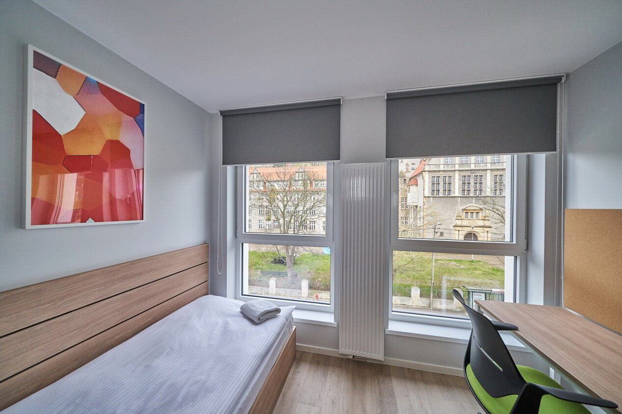 Do Twojej dyspozycji oddajemy 470 pokoi i 4 apartamenty, które zaskoczą Cię nowoczesnym wystrojem i przytulną atmosferą. Oferujemy przestronne wnętrza z wygodnymi łóżkami, aneksami kuchennymi oraz miejscem do pracy i relaksu. Każde pomieszczenie zostało zaprojektowane z myślą o komforcie zarówno krótkoterminowych, jak i dłuższych pobytów. Goście mogą liczyć na wysoki standard wyposażenia oraz dogodną lokalizację w Gdańsku. To idealne miejsce dla turystów, osób podróżujących służbowo oraz studentów. Zapraszamy do rezerwacji i doświadczenia wyjątkowej atmosfery Collegia!