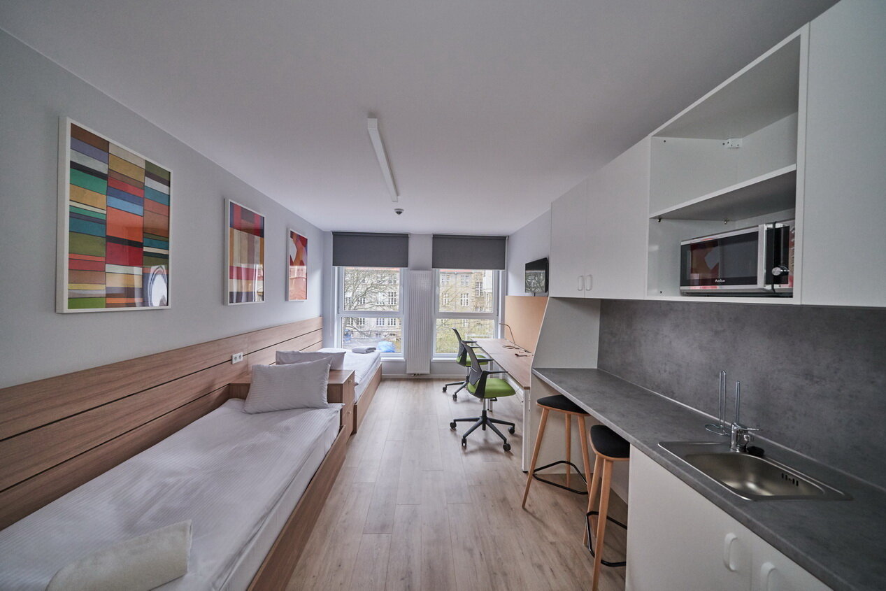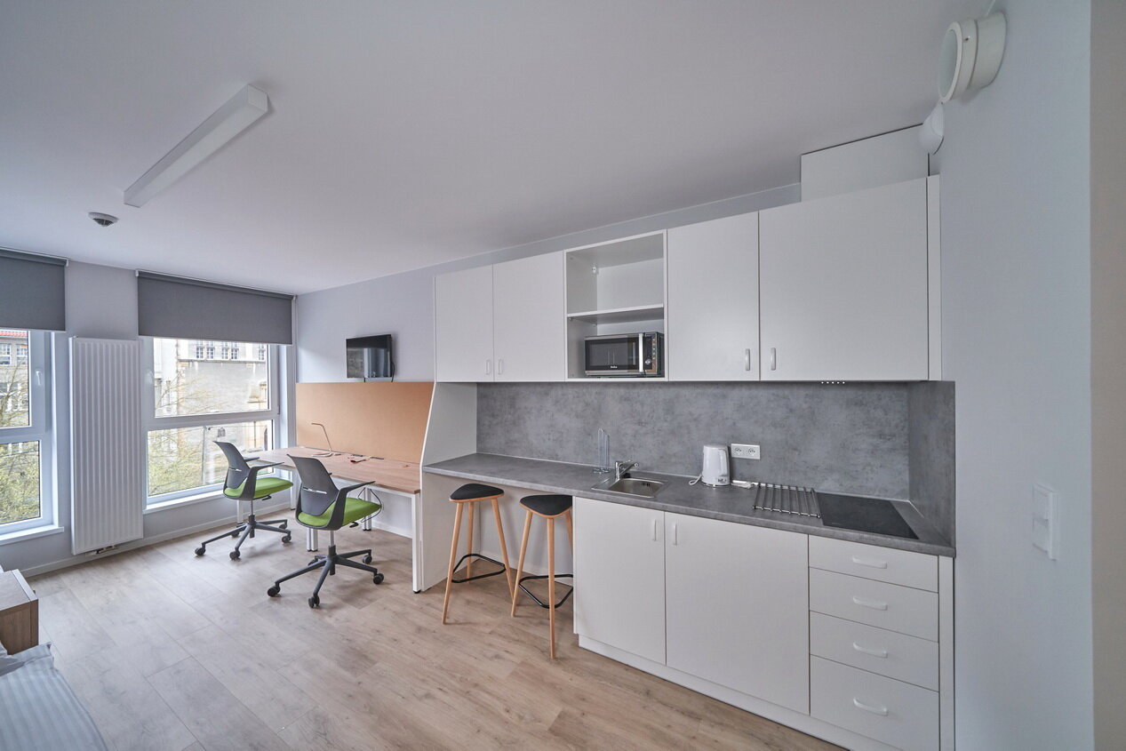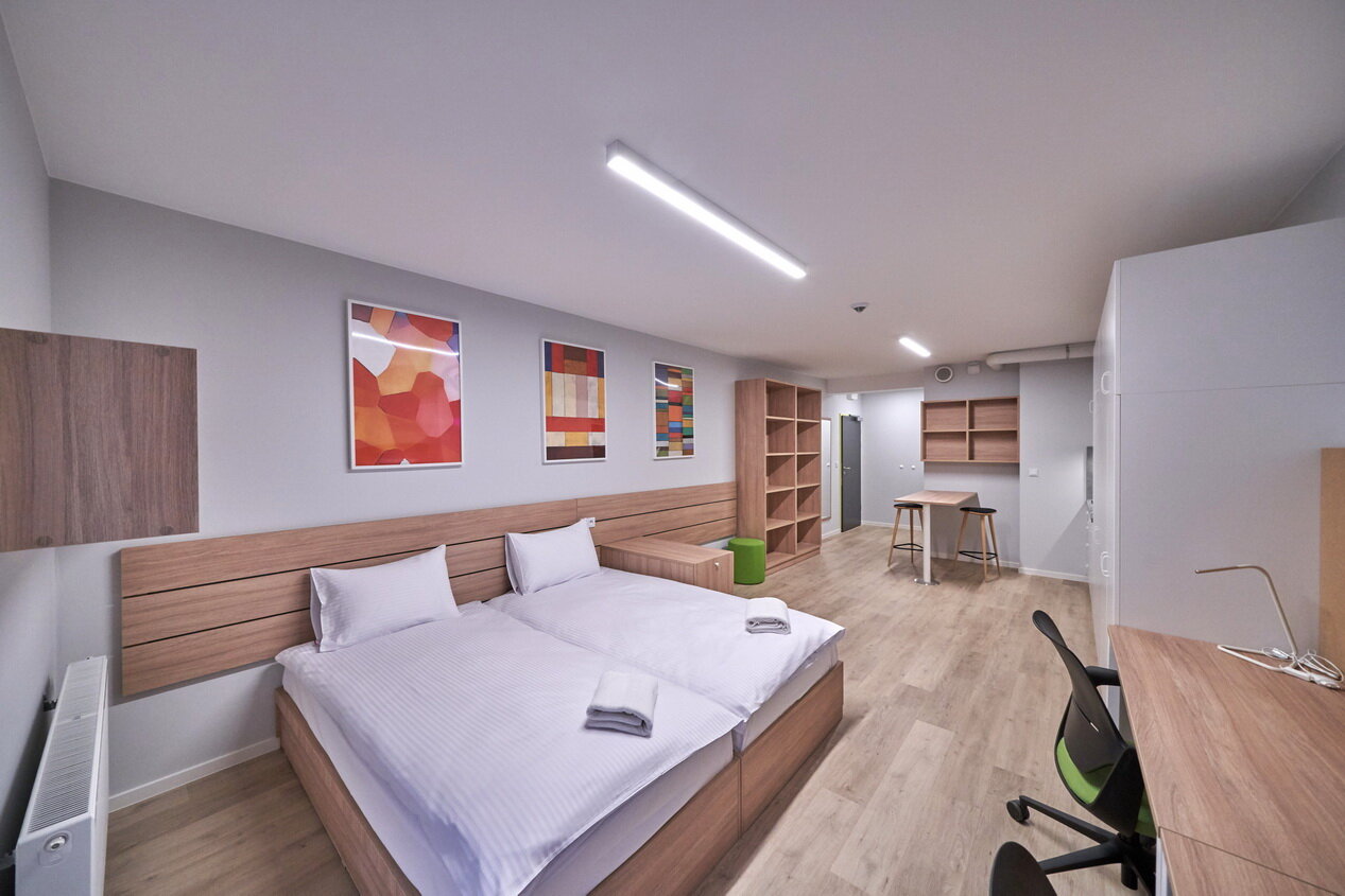 Do Twojej dyspozycji oddajemy 470 pokoi i 4 apartamenty, które zaskoczą Cię nowoczesnym wystrojem i przytulną atmosferą. Oferujemy przestronne wnętrza z wygodnymi łóżkami, aneksami kuchennymi oraz miejscem do pracy i relaksu. Każde pomieszczenie zostało zaprojektowane z myślą o komforcie zarówno krótkoterminowych, jak i dłuższych pobytów. Goście mogą liczyć na wysoki standard wyposażenia oraz dogodną lokalizację w Gdańsku. To idealne miejsce dla turystów, osób podróżujących służbowo oraz studentów. Zapraszamy do rezerwacji i doświadczenia wyjątkowej atmosfery Collegia!