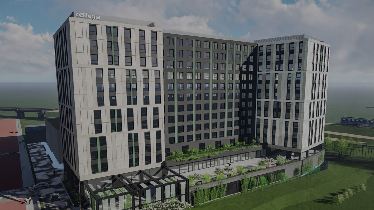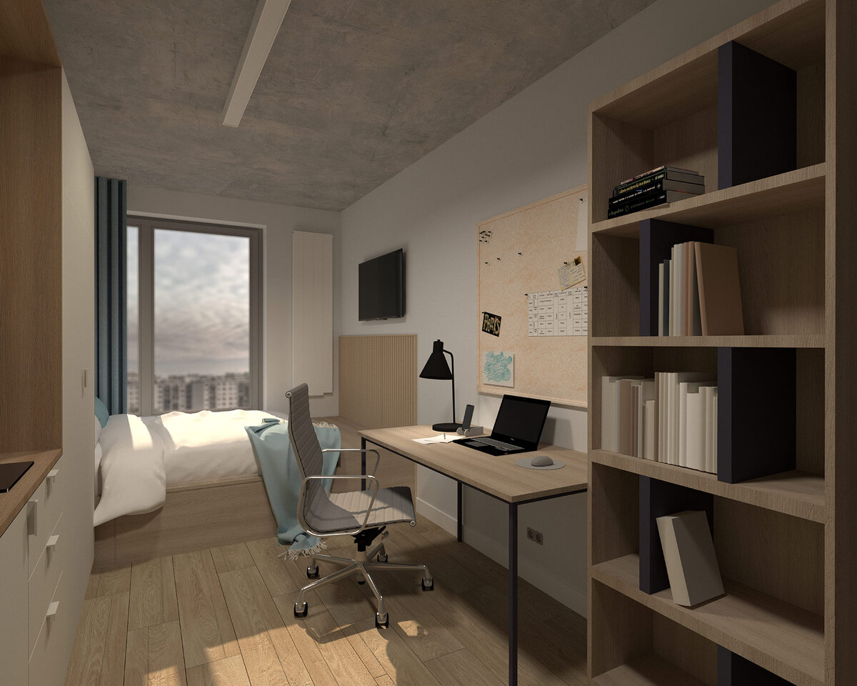 The complex is being built at 239 Grunwaldzka Avenue, near the campus of the University of Gdańsk. The new building will serve two functions: a student dormitory and a hotel. Nearly 500 rooms will be available for guests and students. The rooms located on the top floors will offer views of Gdańsk Bay, the Tri-City Landscape Park and other Gdańsk attractions. Downstairs, on the first floor, there will be restaurants, conference rooms and a fitness centre.